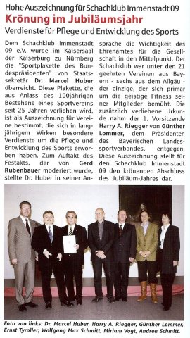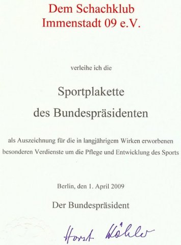Der Bundespräsident Dr. Horst Köhler hat dem Schachklub Immenstadt 09 e.V. die